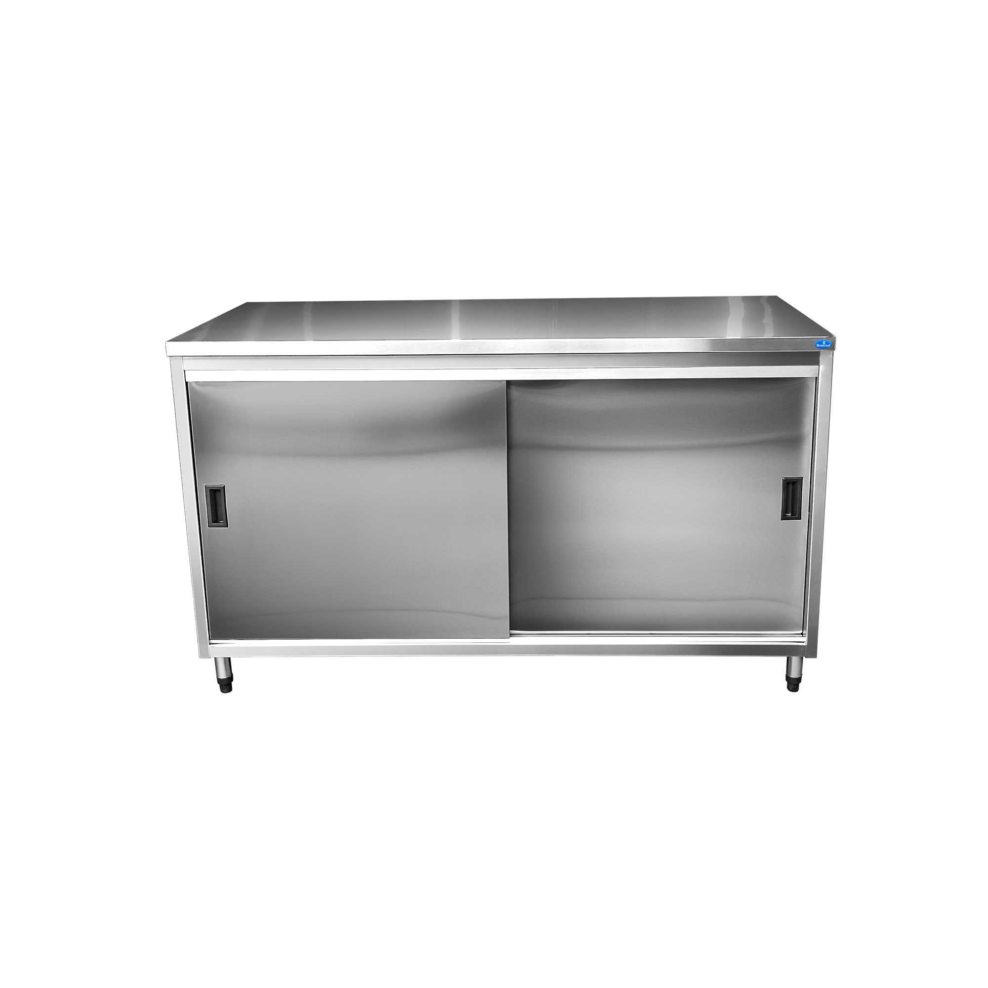 Fabricada em aço inoxidável 201, a bancada combina alta resistência à corrosão com facilidade de limpeza, sendo ideal para ambientes que exigem altos padrões de higiene. A superfície lisa e impermeável garante uma limpeza rápida e eficiente, promovendo um ambiente mais seguro e higiênico. Além disso, o design com portas de correr otimiza o espaço, sendo uma solução prática para cozinhas e espaços de trabalho com circulação intensa.