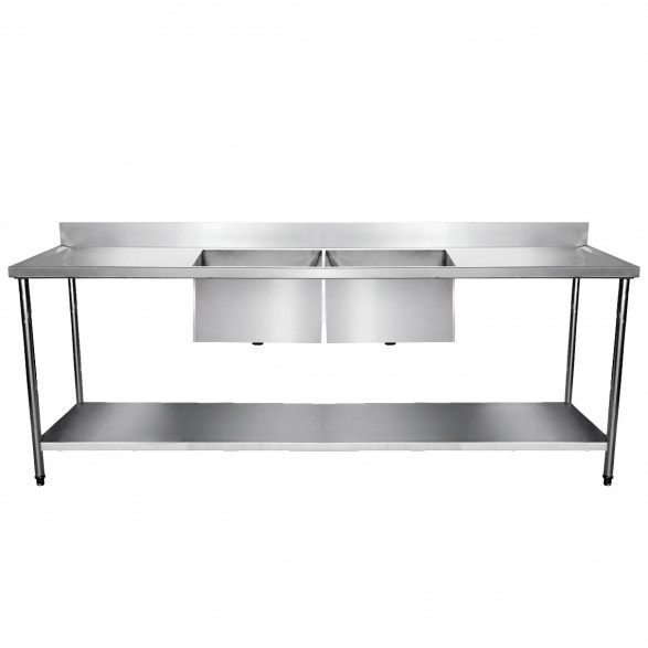| Nome | Bancada Aço Inox com Paneleiro e Duas Cubas Centrais 50x40x25cm - 190x60x80cm - Brascool |