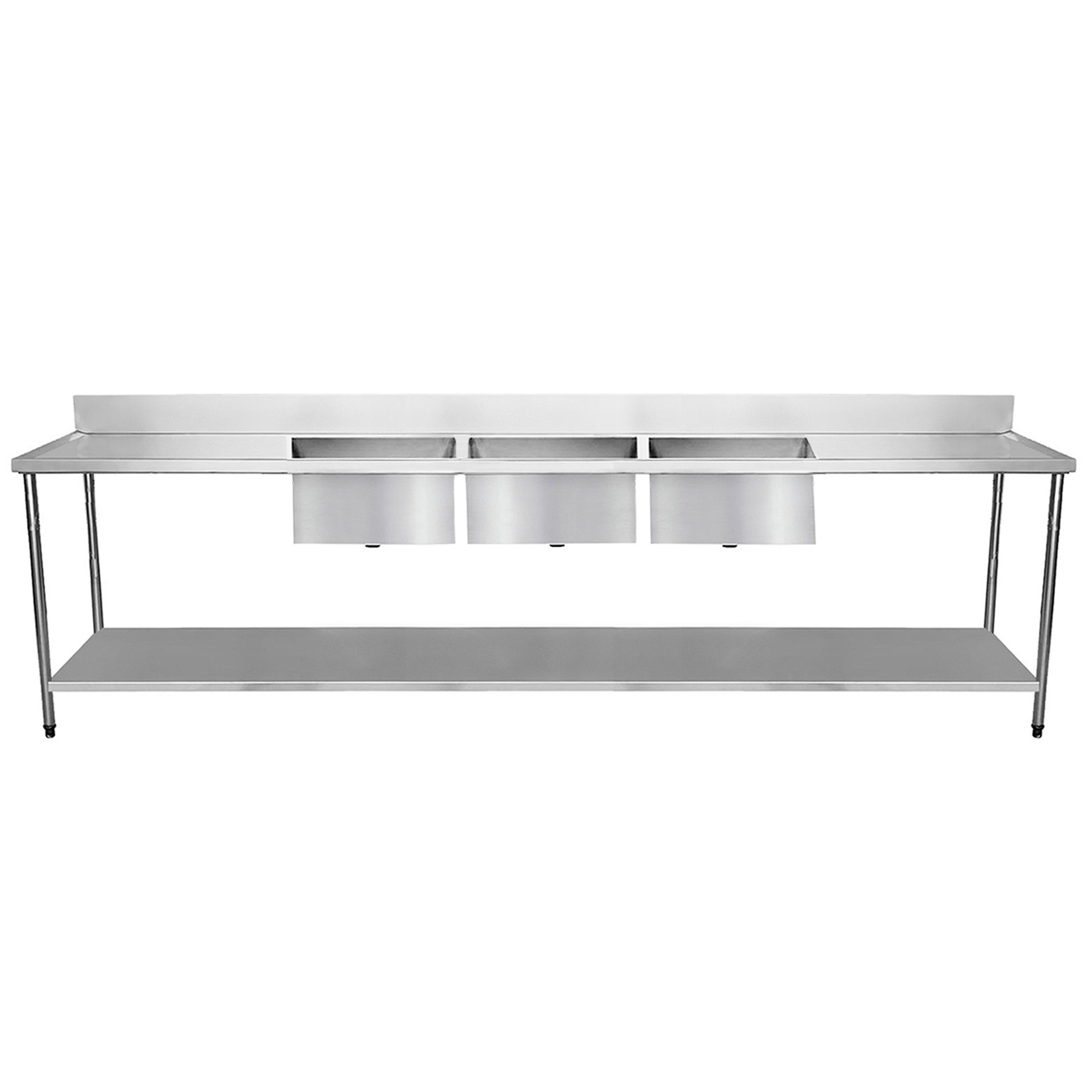 | Nome | Bancada Aço Inox com Paneleiro e Três Cubas Centrais 50x40x25cm - 190x70x90cm - Brascool |