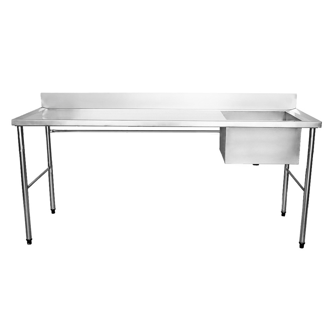 Bancada 1,9 metros de comprimento, produzidos em aço tipo 201. Uma cuba de 50cm a direita. Possui espelho de 10cm, impedindo que o líquido toque na parede. Produto de alta qualidade e resistência.