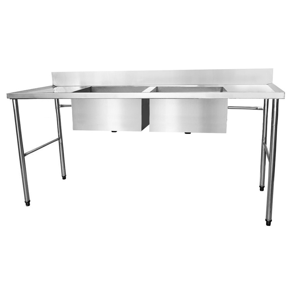 As cubas devem ser embutidas e de aço inoxidável, pois esse material oferece maior segurança quando em contato com o alimento, não transmitindo substâncias tóxicas, odores ou gosto, apresentando maior durabilidade e facilidade na limpeza. A cuba dupla é ideal para área de limpeza dos utensílios, pois permite o uso simultâneo, enquanto se utiliza uma cuba para retirada do excesso de restos de comida, na outra pode dar continuidade a organização da louça.