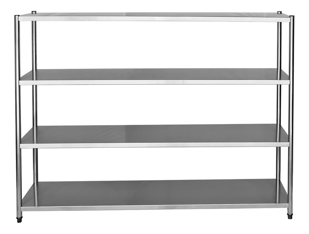 Produzida totalmente em Aço Inoxidável tipo 201 de alta qualidade e resistência. Suporta até 320 kg de carga, sendo 80 kg em cada prateleira. Produto ideal para o armazenamento de produtos em cozinhas, padarias, açougues, frigoríficos, restaurantes e no comércio em geral.