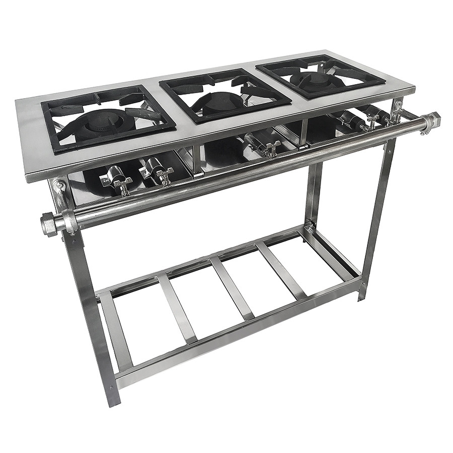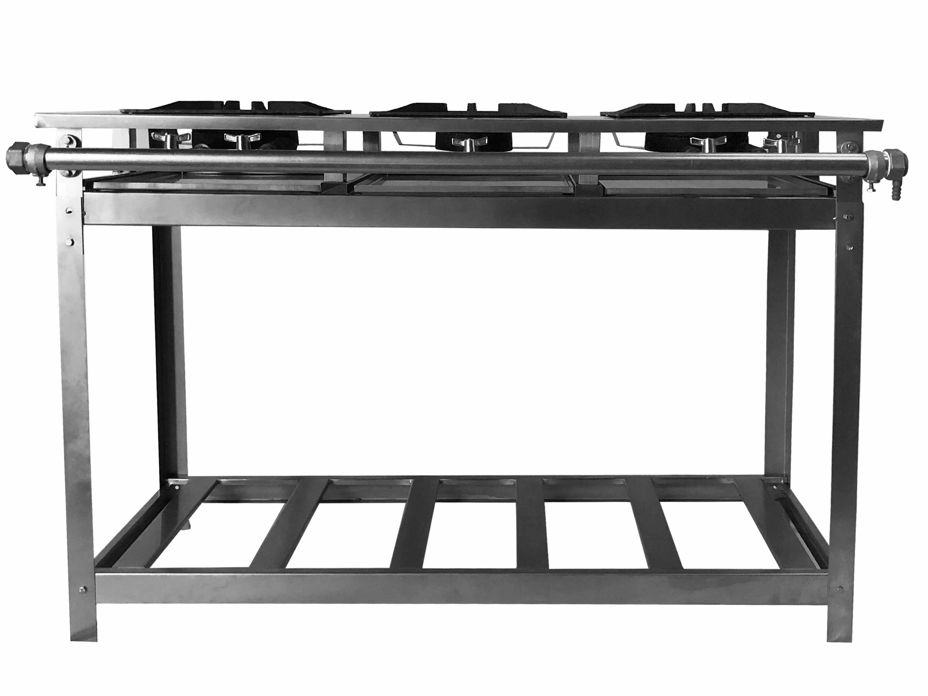 Produzido em Aço Inoxidável tipo 201 de alta qualidade e resistência, o Fogão de 3 bocas, sendo 1 simples e 2 duplas, com grelha e bocas em ferro fundido, proporciona um alto desempenho na preparação de alimentos, tanto em pequenas quantidades, quanto em grandes.