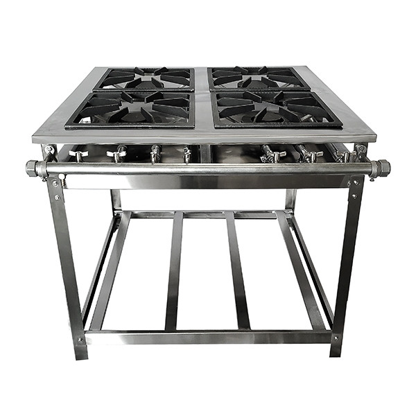 Produzido em Aço Inoxidável tipo 201 de alta qualidade e resistência, o Fogão de 4 bocas, sendo 2 simples e 2 duplas, com grelhas e bocas em ferro fundido, proporciona um alto desempenho na preparação de alimentos, tanto em pequenas quantidades, quanto em grandes.