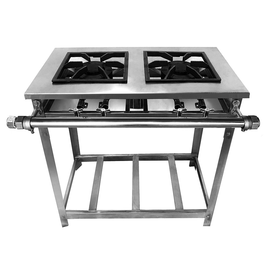 Produzido em Aço Inoxidável tipo 201 de alta qualidade e resistência, o Fogão de 2 bocas duplas, com grelha e bocas em ferro fundido, proporciona um alto desempenho na preparação de alimentos, tanto em pequenas quantidades, quanto em grandes.