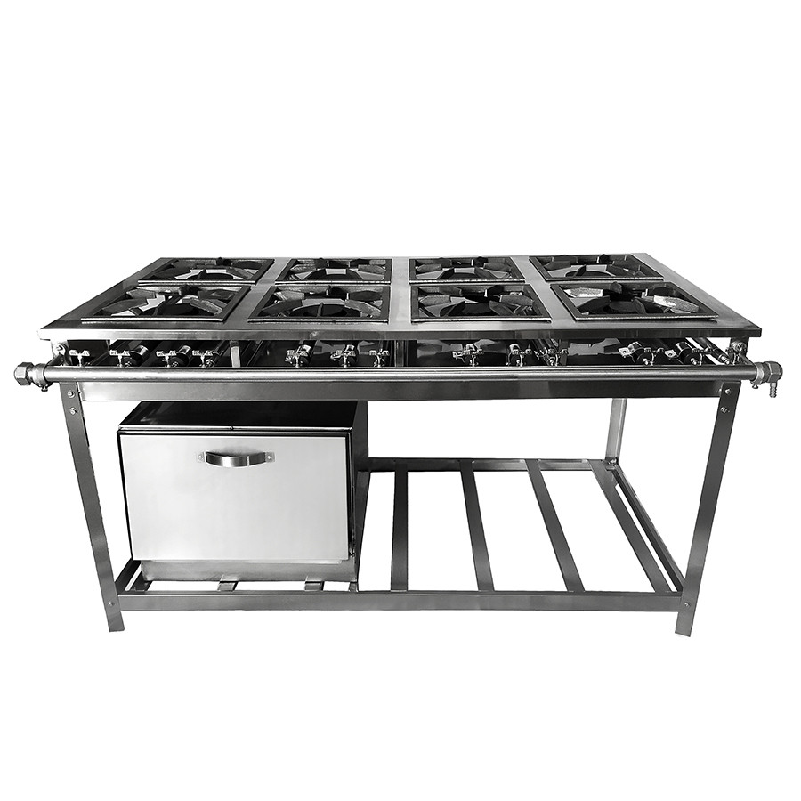Produzidos em Aço Inoxidável tipo 201 de alta qualidade e resistência, o Fogão de 8 bocas (4 simples e 4 duplas), com grelhas e bocas em ferro fundido, juntamente com o Forno 80 Litros, proporcionam um alto desempenho na preparação de alimentos, tanto em pequenas quantidades, quanto em grandes.