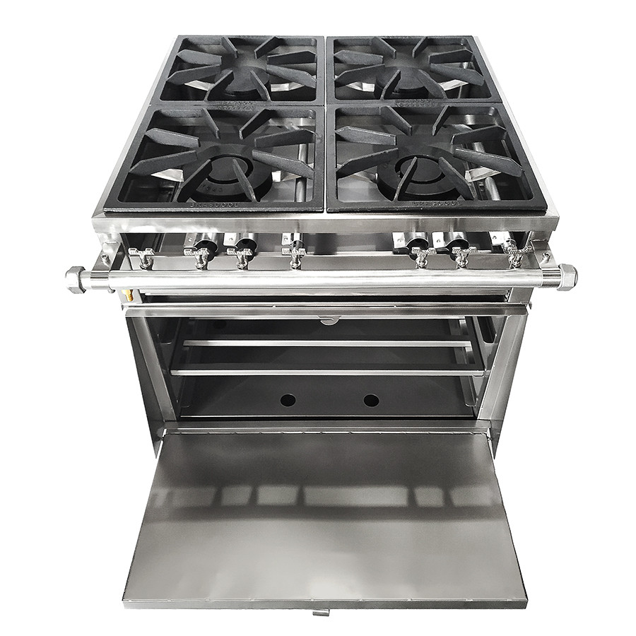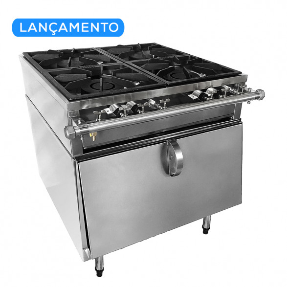 | Nome | Fogão Industrial Inox 4 bocas Baixa Pressão com Forno 200 litros Gourmet - Grelha 38x38 - Brascool |