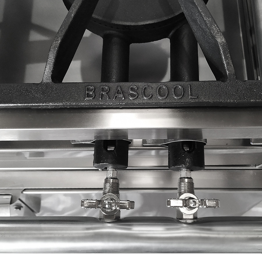 Possui 4 Bocas (2 duplas e 2 simples) e controle individual de chamas. A sua válvula reguladora de pressão está dentro das normas de segurança da A.B.N.T. para G.L.P. (Gás Liquefeito de Petróleo)
