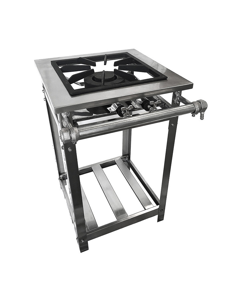 Produzido em Aço Inoxidável tipo 201 de alta qualidade e resistência, o Fogão de 1 boca dupla, com grelha e boca em ferro fundido, proporciona um alto desempenho na preparação de alimentos, tanto em pequenas quantidades, quanto em grandes.