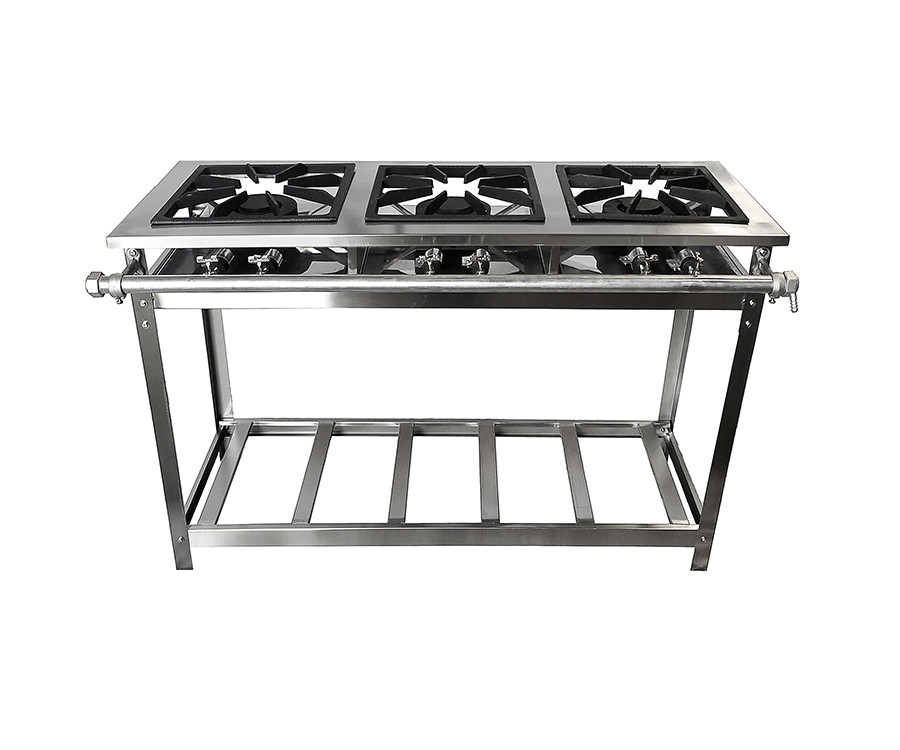 Produzido em Aço Inoxidável tipo 201 de alta qualidade e resistência, o Fogão de 3 bocas duplas, com grelhas e bocas em ferro fundido, proporciona um alto desempenho na preparação de alimentos, tanto em pequenas quantidades, quanto em grandes.