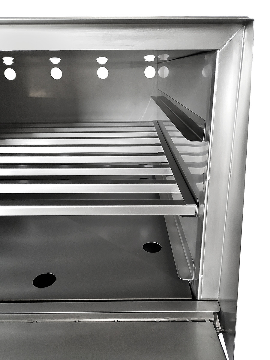 Todo desenvolvido em aço inox, oferece muito requinte, modernidade, qualidade, charme, elegância e design em um só produto. Além disso, o aço inoxidável só oferece vantagens, como o fato de limpeza fácil e prática, alta durabilidade, estética, economia, entre outros.