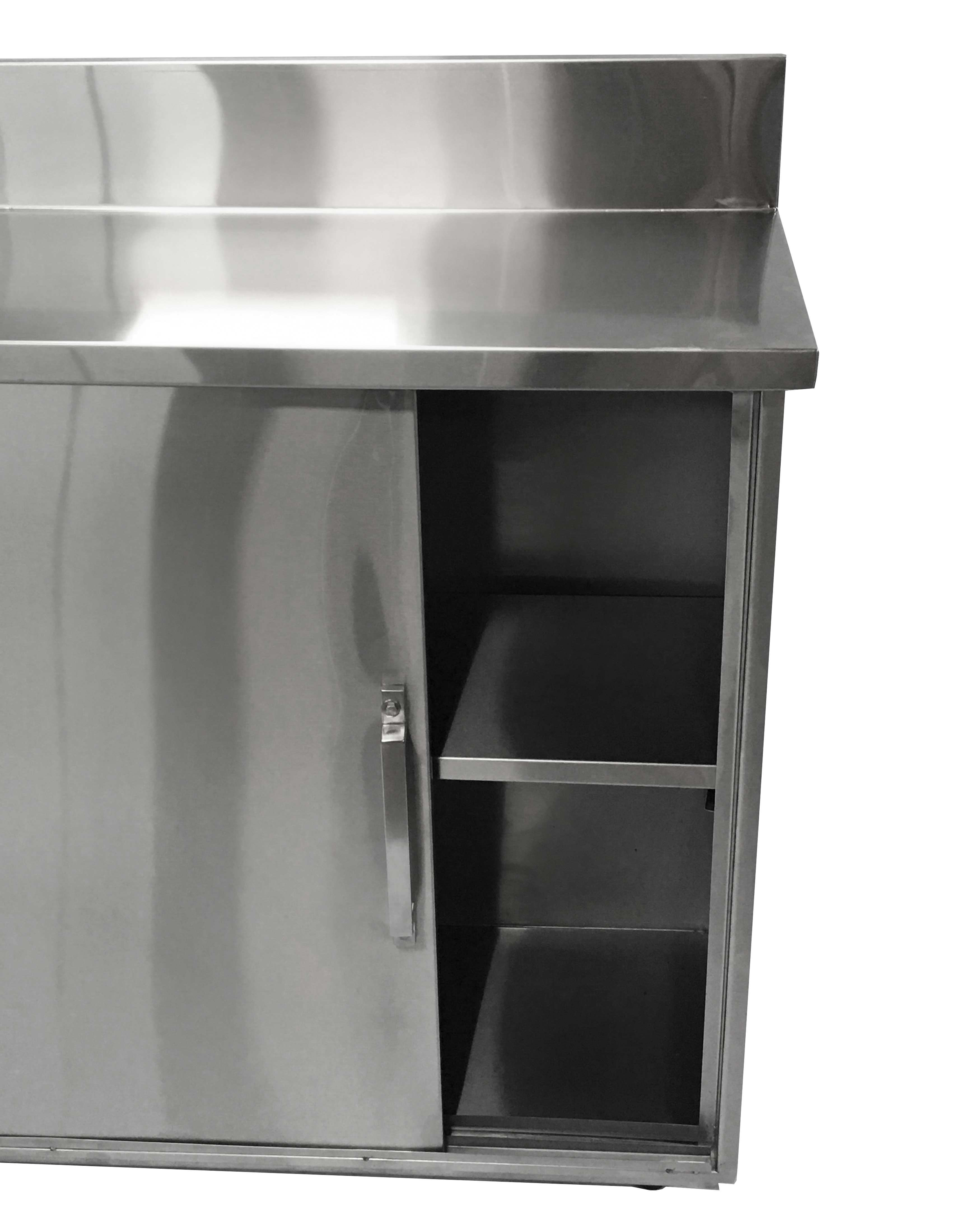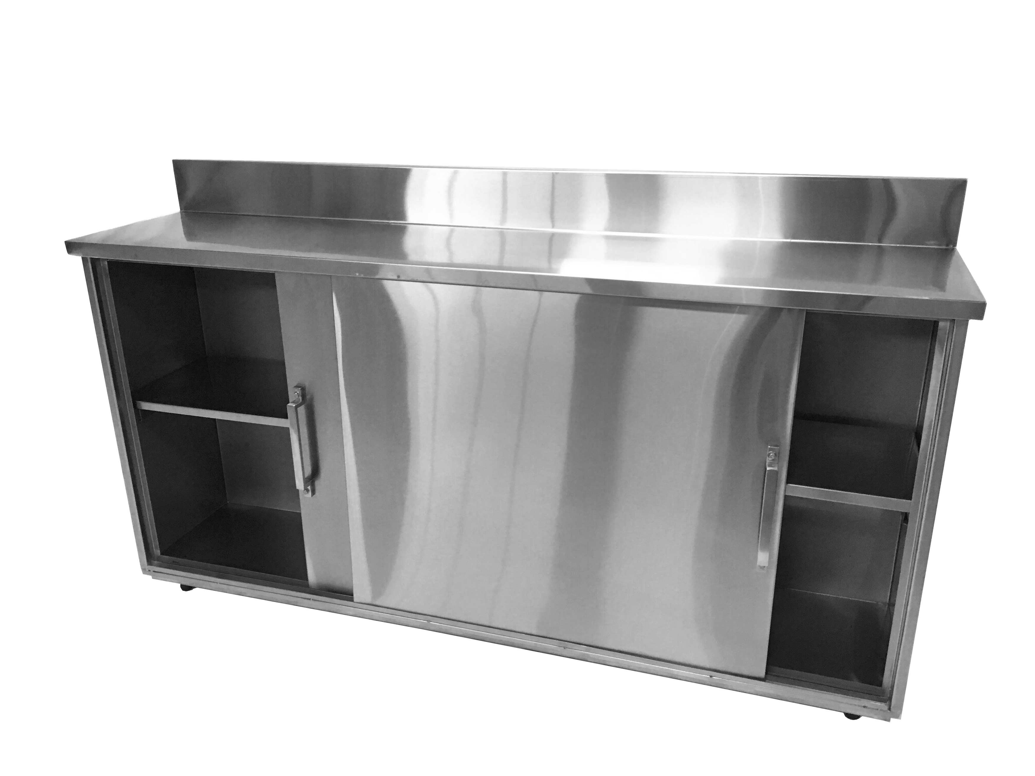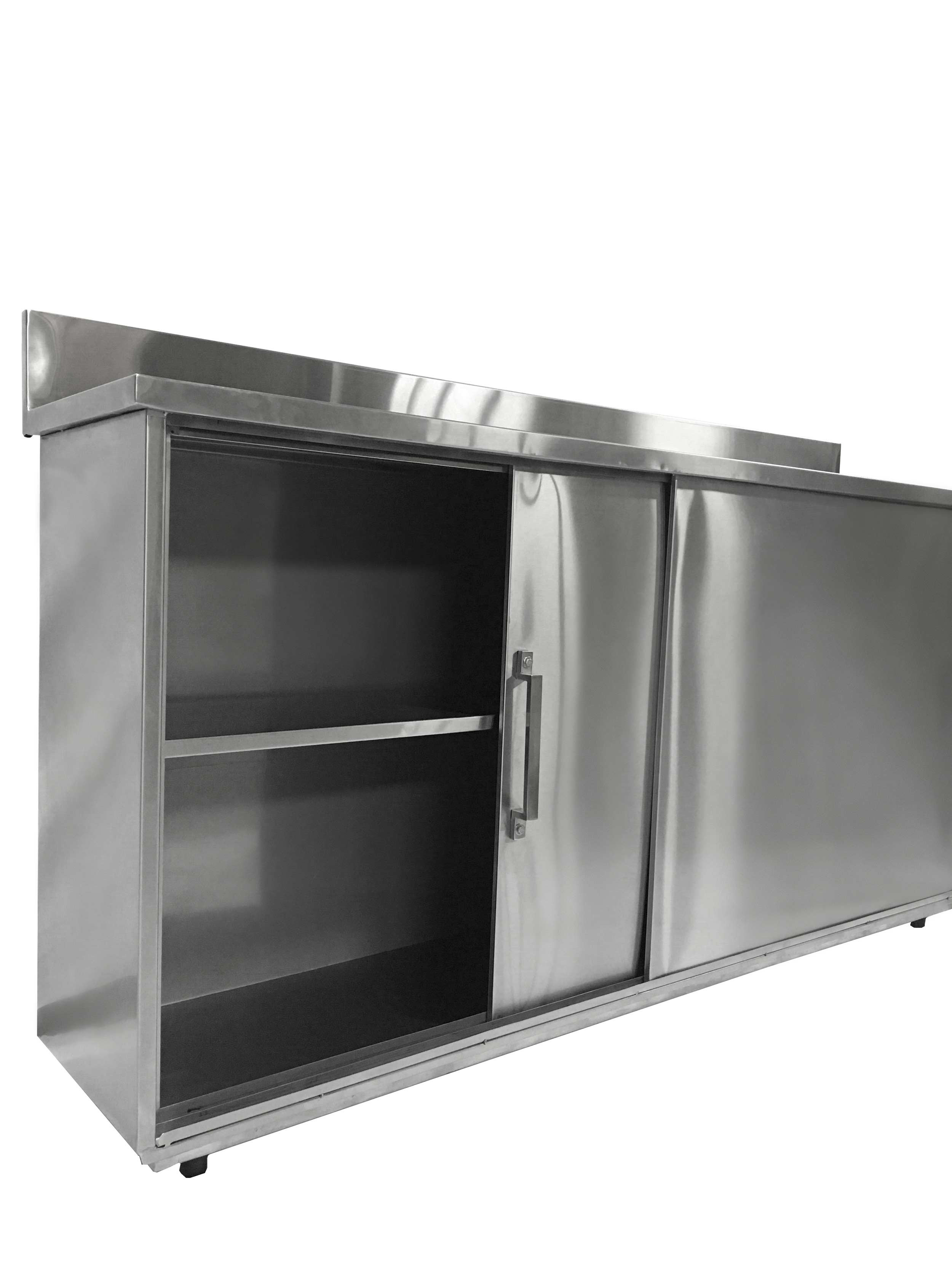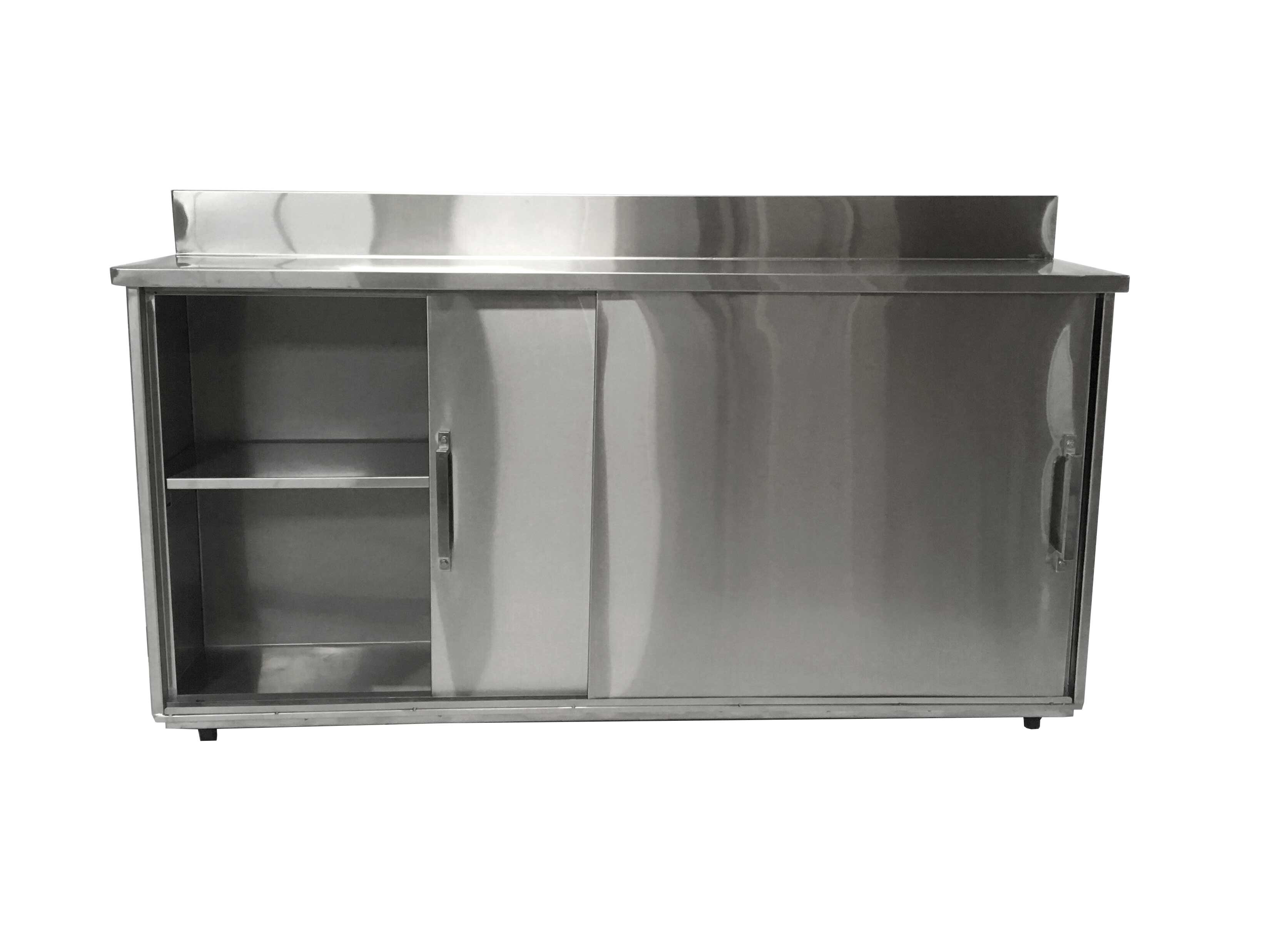 | Nome | Mesa Aço Inox C/ Espelho e Armário com Porta de Correr e Uma Parteleira Interna - 180x40x90cm |