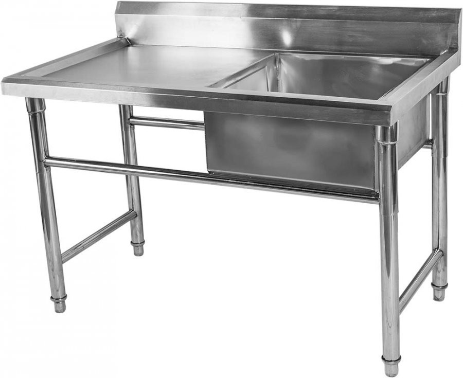 Mesa Bancada de 1 metro com cuba de 40x40x25cm, produzida totalmente em Aço Inoxidável AISI 201 de alta qualidade e resistência. Opção ideal para a utilização como pia ou lavatório em cozinhas industriais e comerciais, proporcionando higiene e durabilidade.