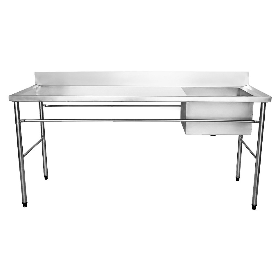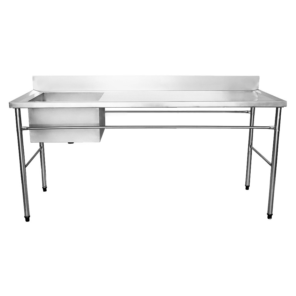 Mesa Aço Inox de 1,8 metros de comprimento, 70cm de largura e 90cm de altura com uma cuba 50x40x25cm.