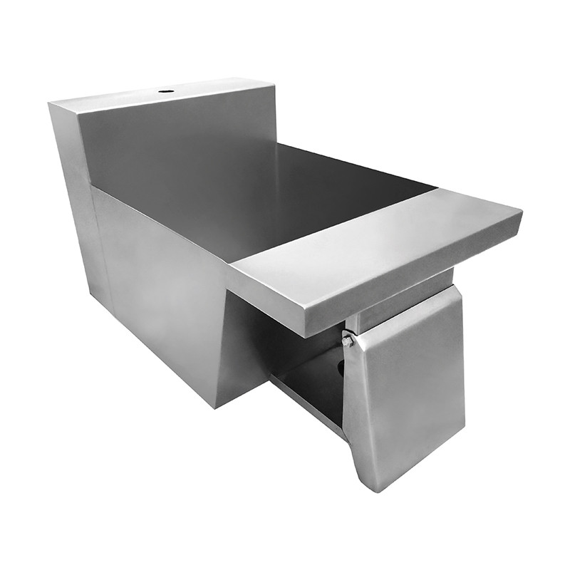 Pia de Assepsia para fixação na parede, modelo com acionamento de joelho produzida totalmente em Aço Inoxidável tipo 304 de alta qualidade e resistência.