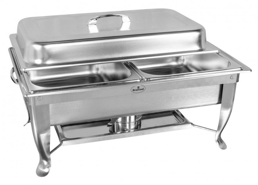 - Contém três cubas removíveis, duas para os alimentos e outra para a água, que mantém os alimentos aquecidos pelo calor do(s) fogareiro(s)