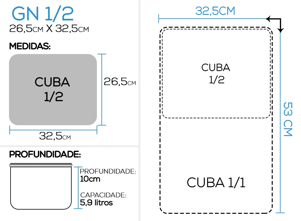 2 Cubas GN 1/2 x 100mm para os alimentos