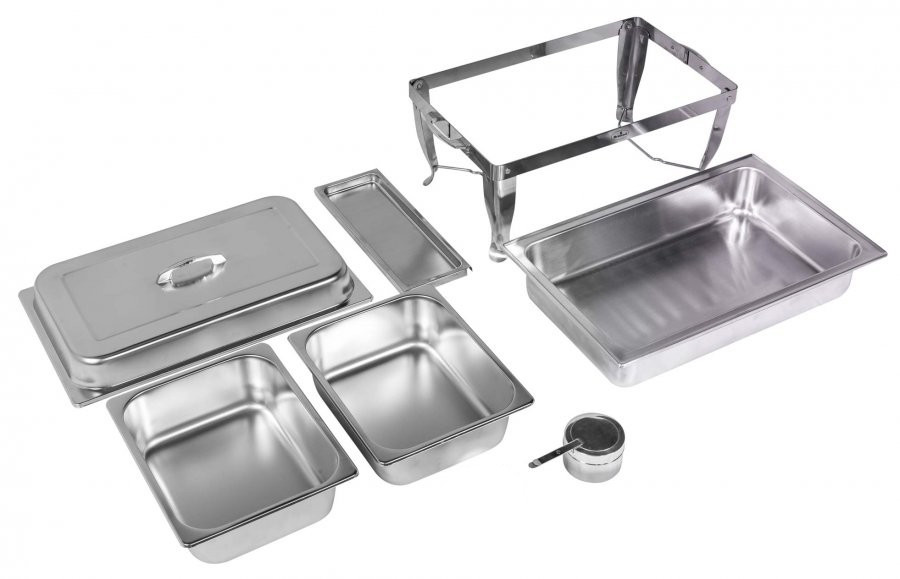 - Utiliza cubas de tamanho global (GN), podendo ser utilizadas em outros Rechauds ou Buffets