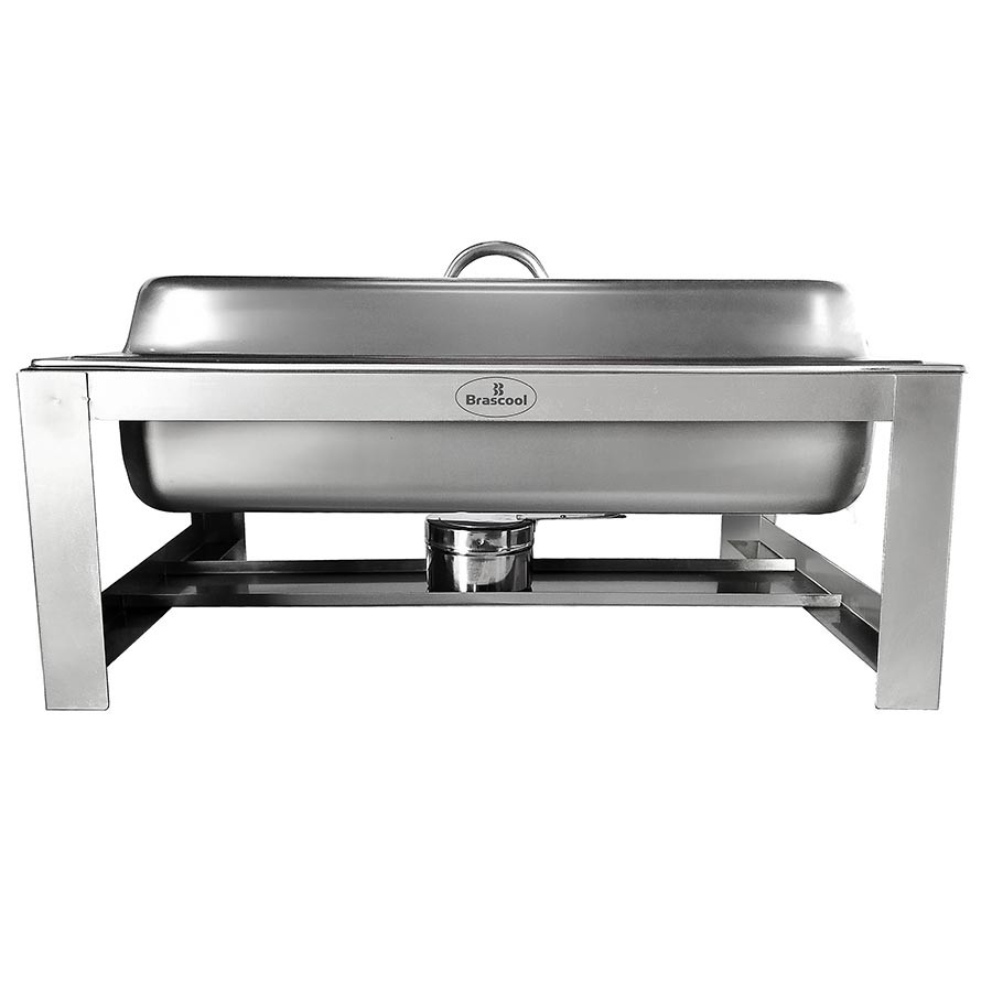 Rechaud Retangular com cuba GN 1/2 x 65mm e 7,8 litros de capacidade, produzido em aço inoxidável de alta qualidade e resistência.