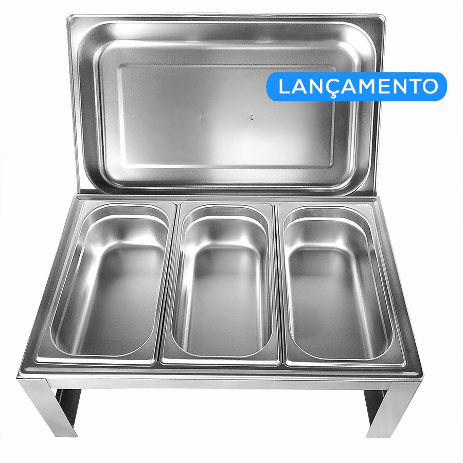 | Nome | Rechaud Banho Maria Aço Inox com 3 Cubas (GN 1/3 100mm ) - B433-3B |