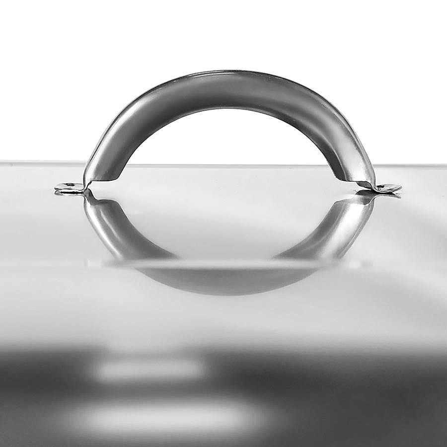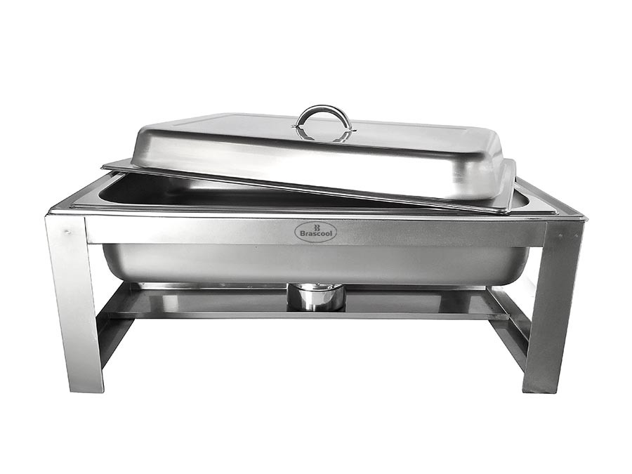 Rechaud Retangular com cuba GN 1/3 x 65mm e 7,5 litros de capacidade, produzido em aço inoxidável de alta qualidade e resistência.