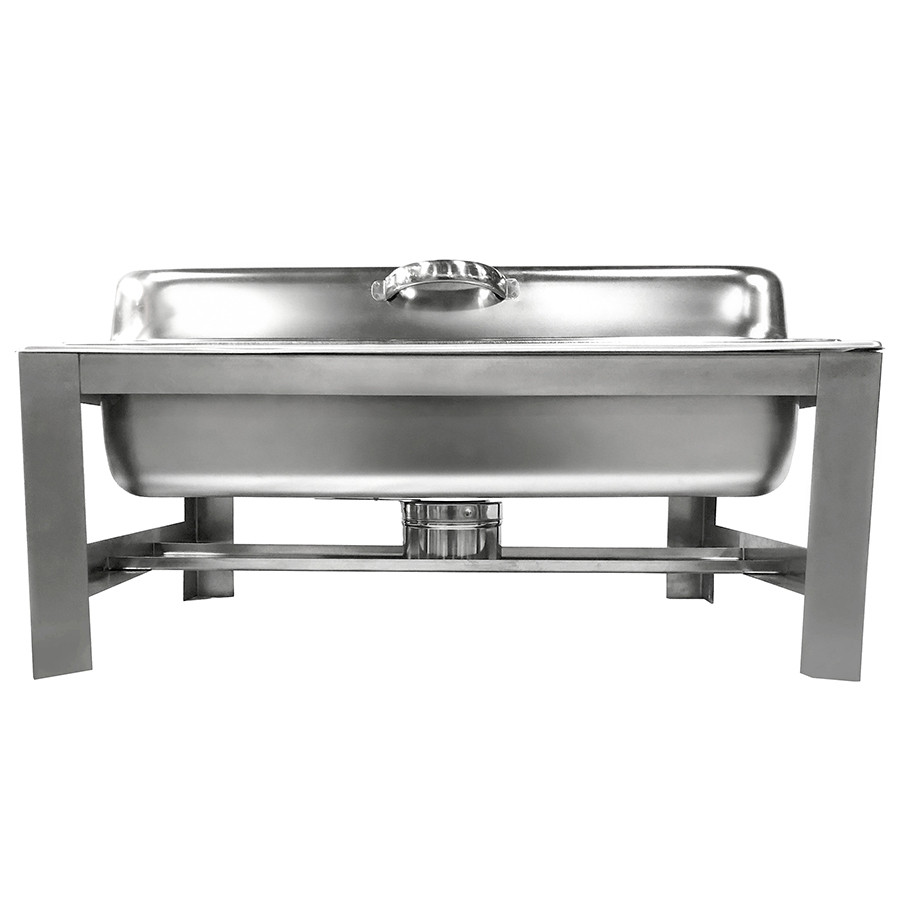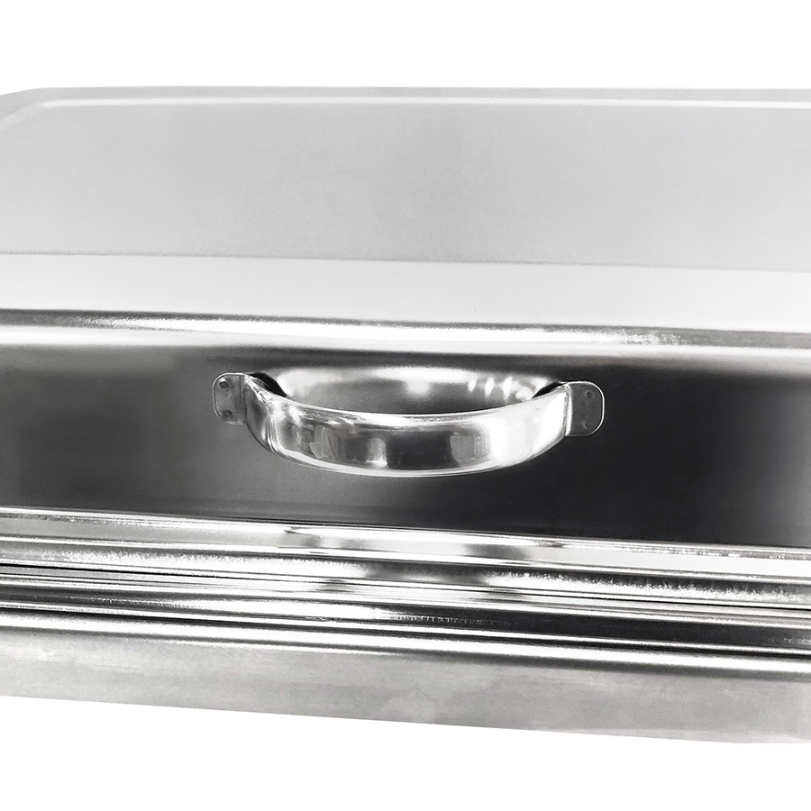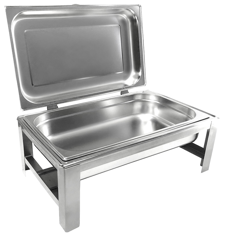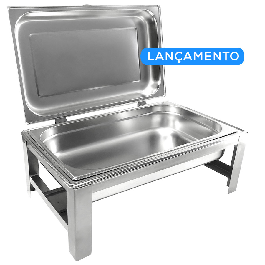Rechaud Retangular com capacidade de 13 Litros, com 1 Cuba (GN 1/1 x 100mm) e Dobradiças na tampa. Perfeito para você servir seus alimentos com elegância e praticidade em refeitórios, buffets, eventos e até em sua residência.