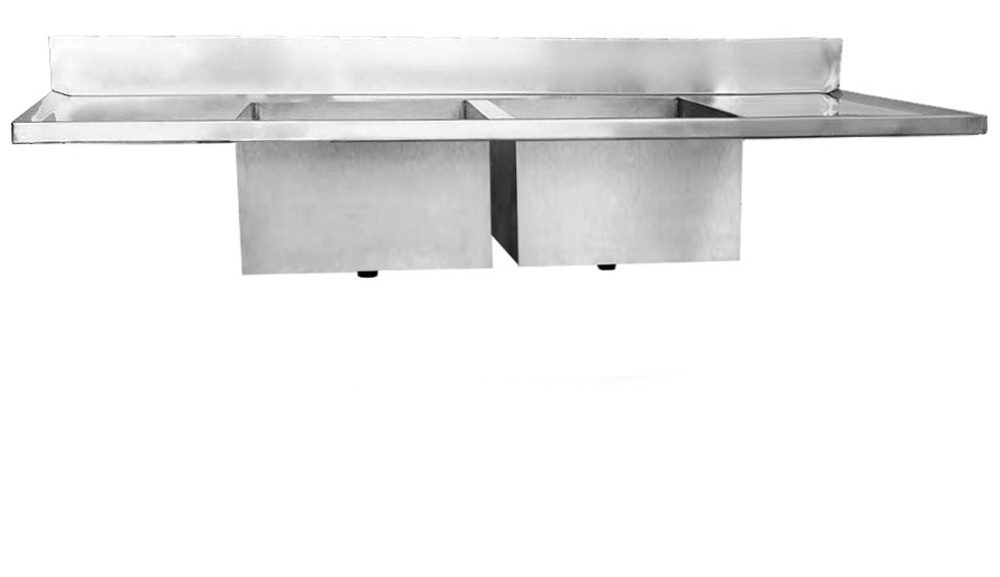 O Tampo Bancada possui, 1,9 metros de comprimento, produzido no tipo 201, alta qualidade e resistência, com duas cubas Centrais, medindo 50x40x25cm de profundidade. Possui espelho de 10cm que possibilita o manuseio de líquidos, visando uma barreira entre o móvel e a parede, borda d'água e reforço na bancada.