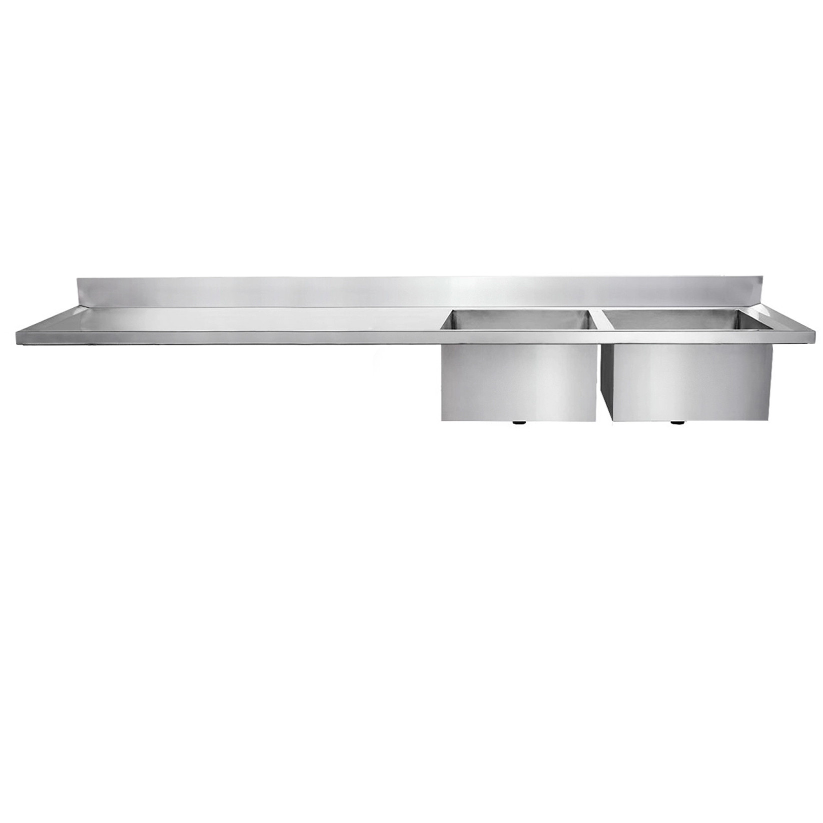 O Tampo Bancada possui, 2 metros de comprimento, produzido no tipo 201, alta qualidade e resistência, com duas cubas a Direita, medindo 50x40x25cm de profundidade. Possui espelho de 10cm que possibilita o manuseio de líquidos, visando uma barreira entre o móvel e a parede, borda d'água e reforço na bancada.