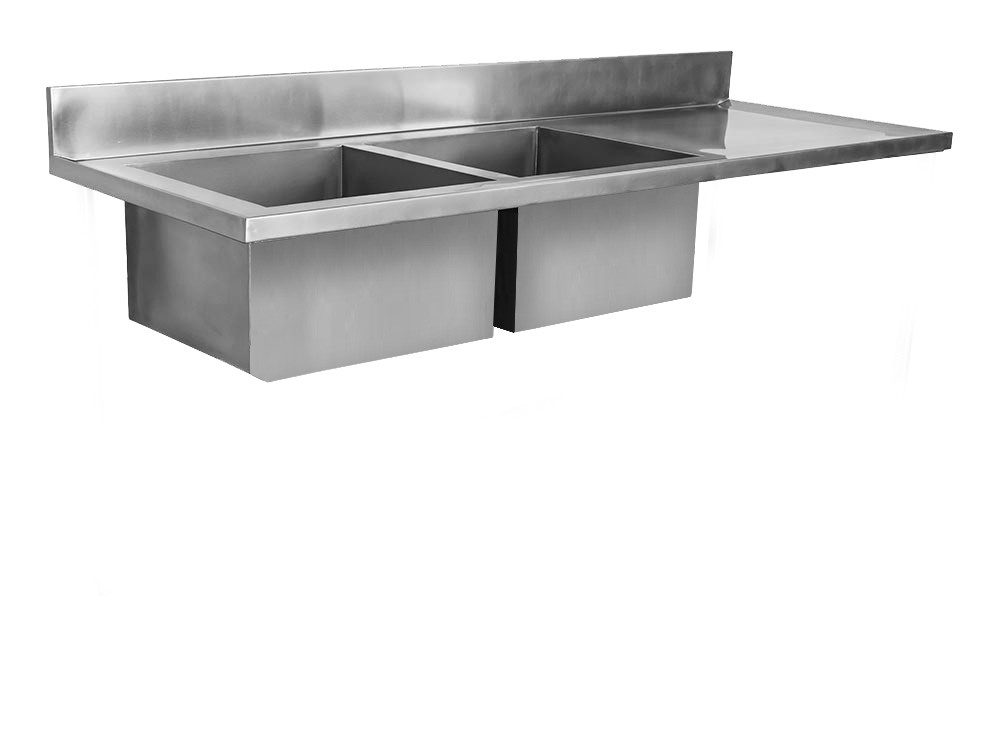 O Tampo Bancada possui, 1,6 metros de comprimento, produzido no tipo 201, alta qualidade e resistência, com duas cubas a Esquerda, medindo 50x40x25cm de profundidade. Possui espelho de 10cm que possibilita o manuseio de líquidos, visando uma barreira entre o móvel e a parede, borda d'água e reforço na bancada.