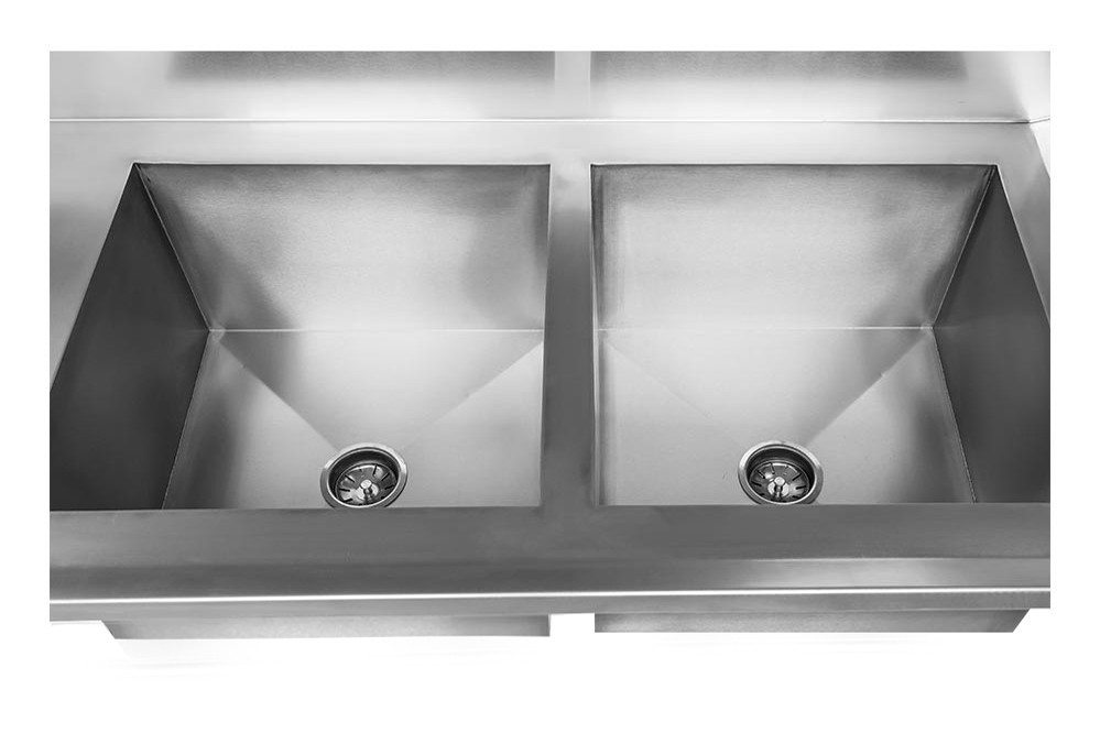 O Tampo Bancada possui, 1,9 metros de comprimento, produzido no tipo 201, alta qualidade e resistência, com duas cubas a Esquerda, medindo 50x40x25cm de profundidade. Possui espelho de 10cm que possibilita o manuseio de líquidos, visando uma barreira entre o móvel e a parede, borda d'água e reforço na bancada.