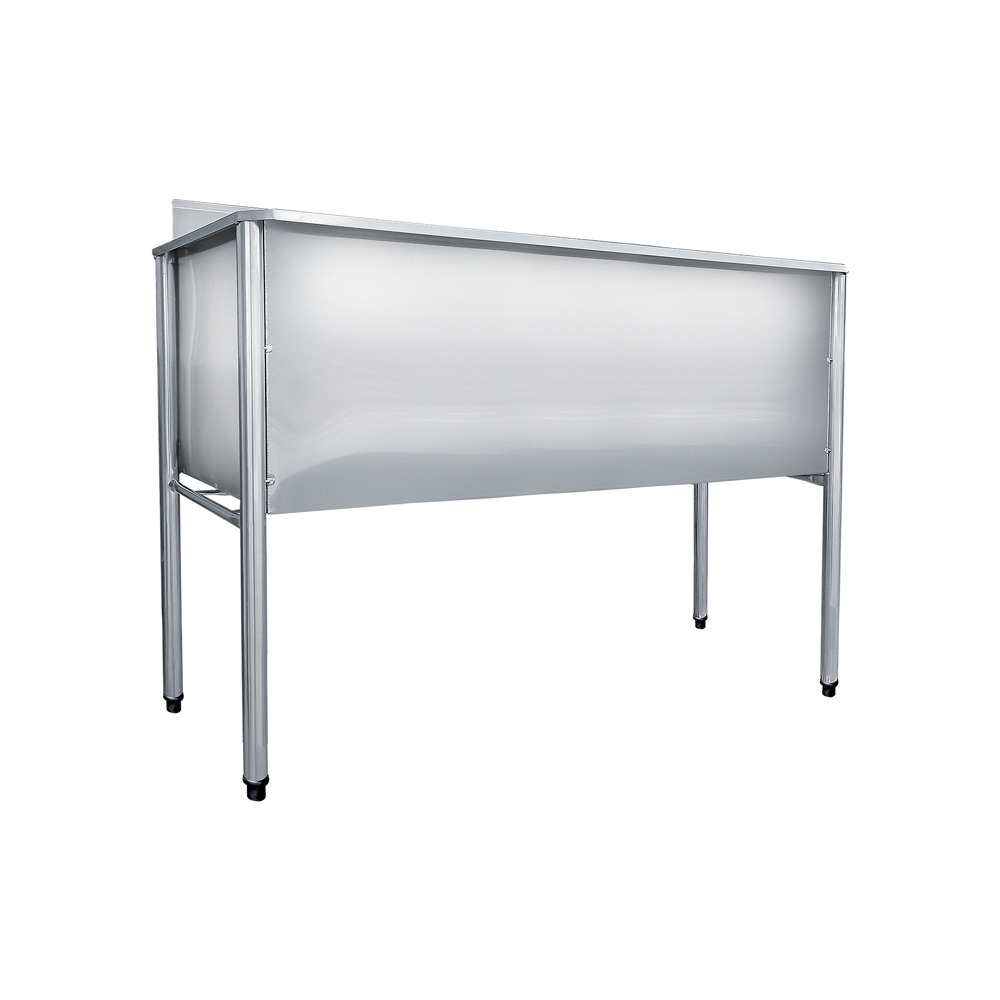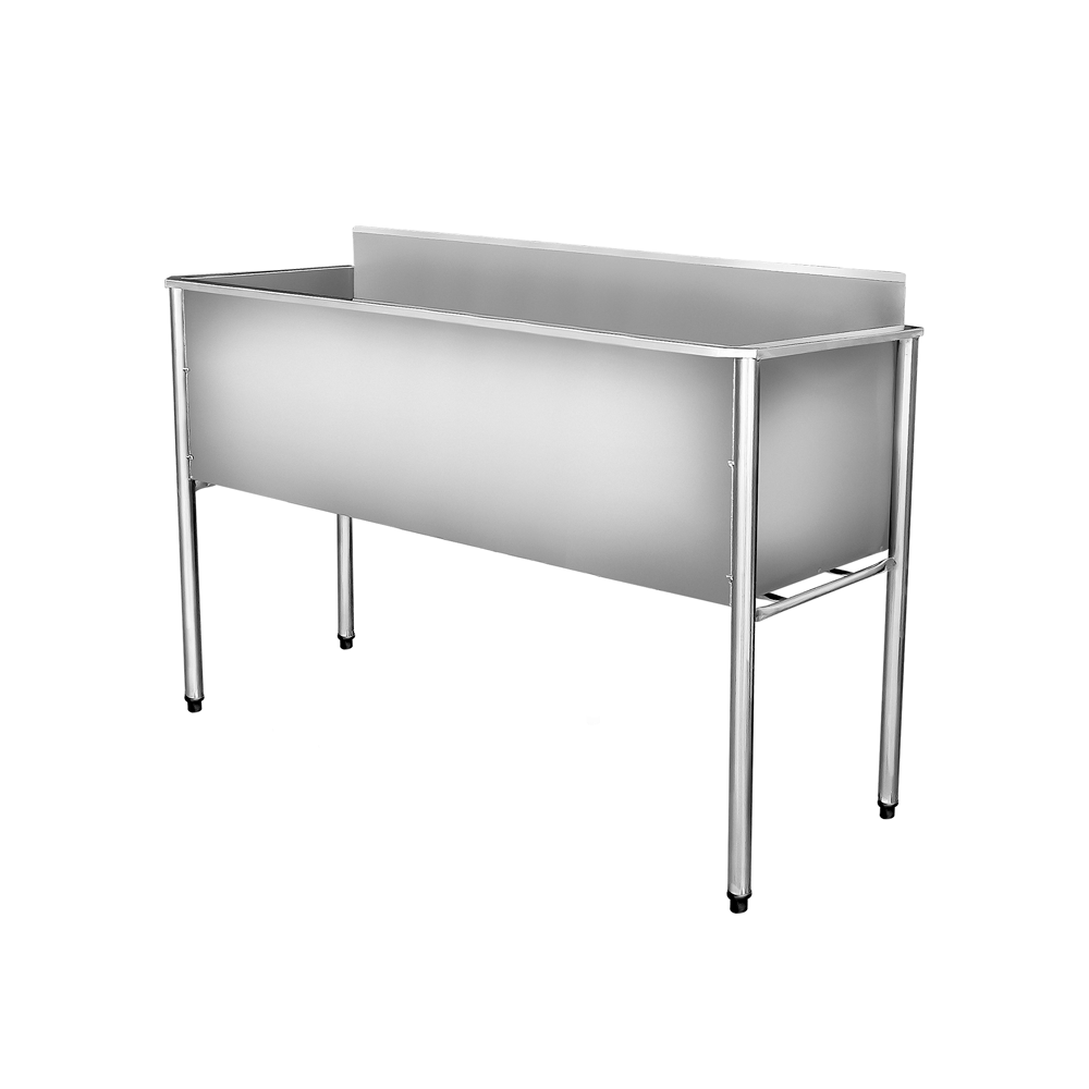 Tanque Pia 1,60 metros de comprimento, totalmente produzido em Aço Inox 201. Com cuba de 1,52 metros de comprimento, 71 cm de largura e 45 cm de altura. Espelho frontão de 10 cm, responsável pela prevenção de respingos de líquidos na parede.