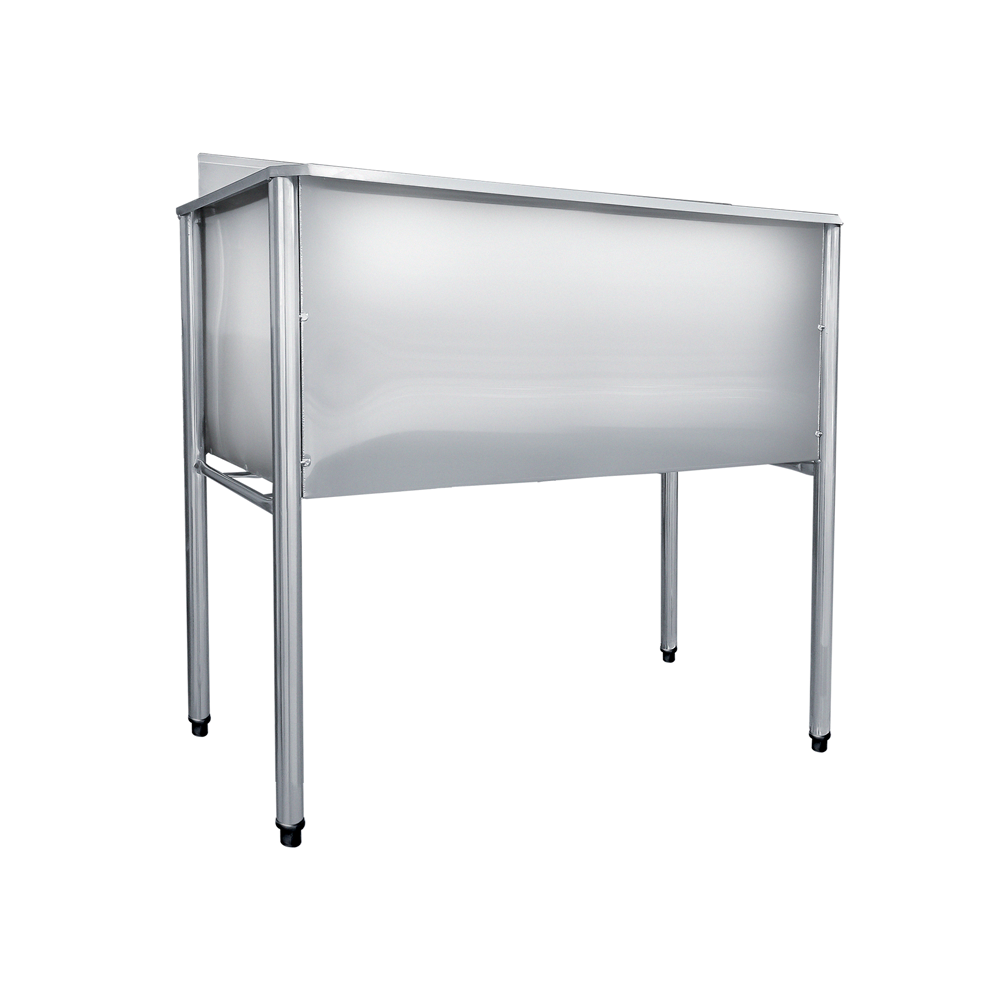 Tanque Pia 1 metro de comprimento, totalmente produzido em Aço Inox 201. Com cuba de 92 cm de comprimento, 51 cm de largura e 45 cm de altura. Espelho frontão de 10 cm, responsável pela prevenção de respingos de líquidos na parede.